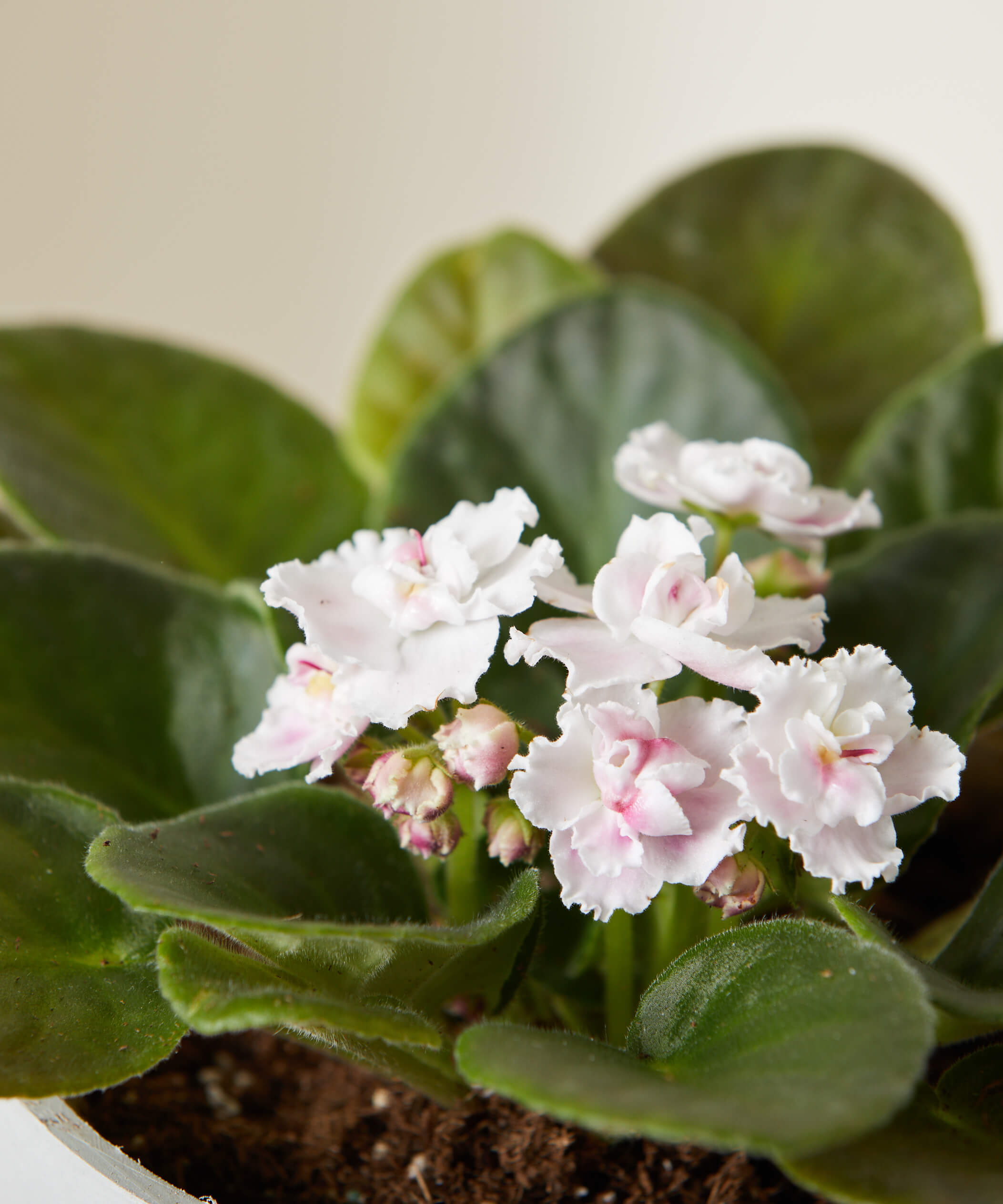 To keep your African violet blooming, you must keep the soil evenly moist, but never soggy. Water when the soil volume is 25% dry. This plant likes to be kept moist, but does not like to sit in soggy soil. Avoid getting the leaves wet, and the bottom-watering method is recommended. Place your plant in a sink filled with 2-4″ of water. Leave the plant to soak for up to 45 minutes. Test the top of the soil for moisture. If it still feels dry water a little from the top. When your plant’s soil is evenly damp, drain the sink/tub and allow the plant to rest while it drains thoroughly.