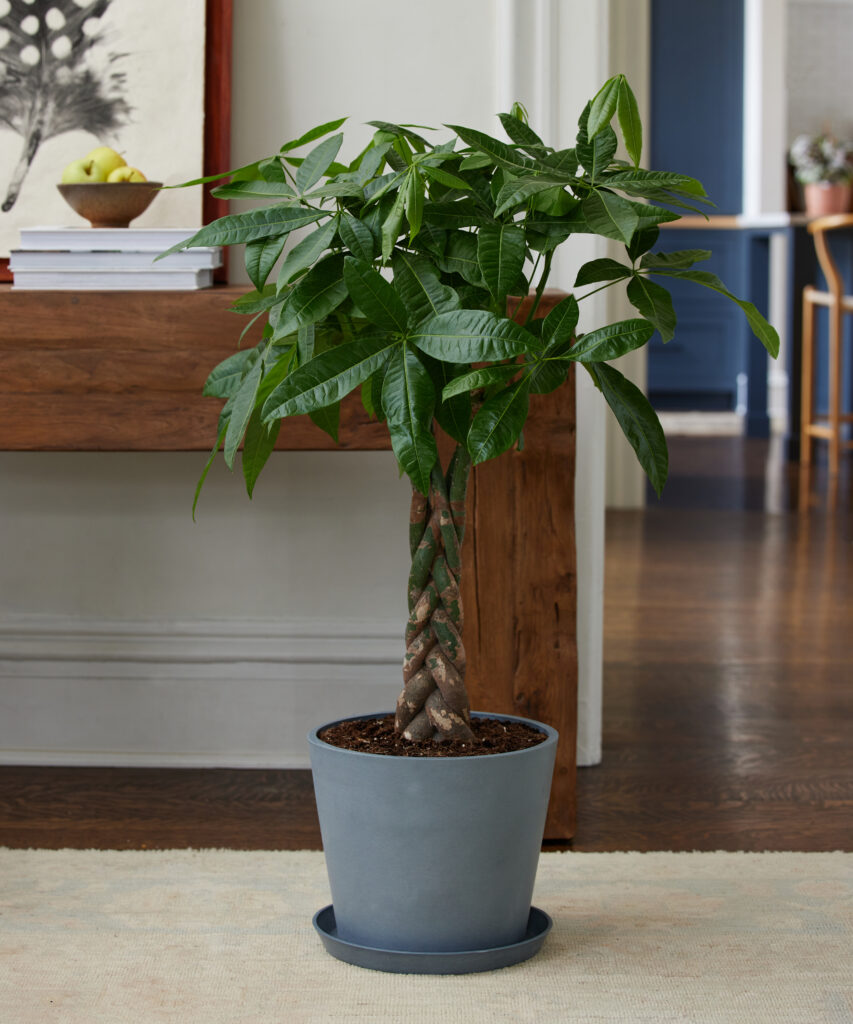 For the perfect low-maintenance leafy houseplant, meet the Money Tree. This tropical plant is native to Mexico and northern South America and features verdant palm-like leaves and a unique braided stem. According to ancient Feng Shui practice, Money Trees can enhance the wealth and prosperity of its owners and therefore make a great addition to a home office. To help your money plant thrive, place it in low to bright indirect sunlight and water deeply but infrequently.