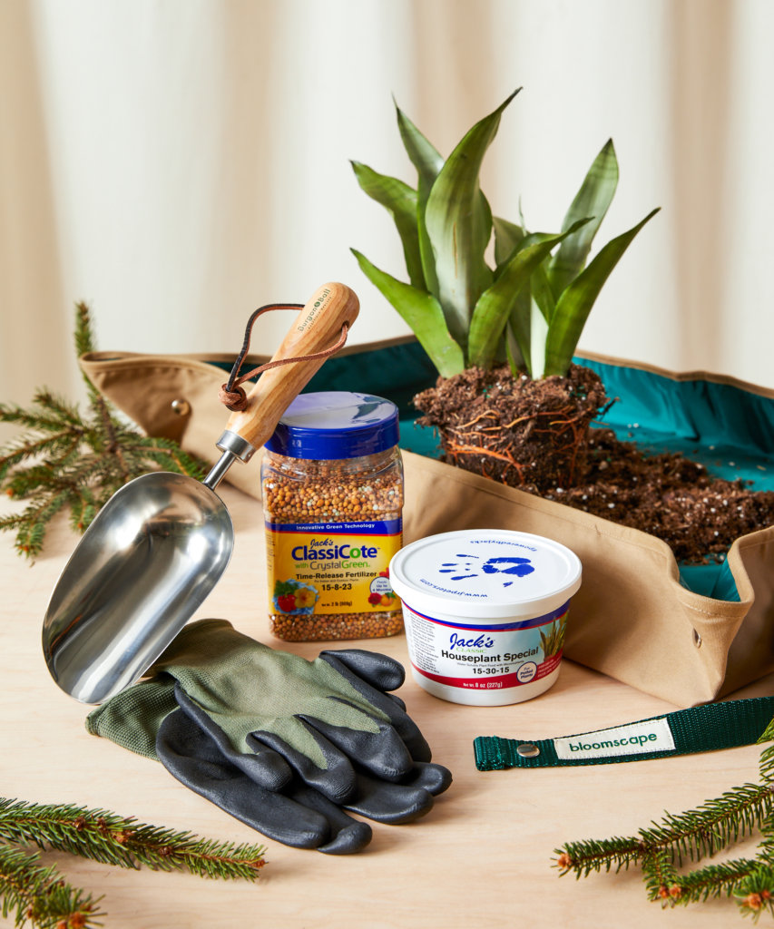 Share the gift of plant care with our Essential Repotting Set. This gift set includes everything they’ll need to repot their plants with Grow-How™. Including a potting tarp, garden gloves, soil scoop, and two indoor plant fertilizers, this set makes for a thoughtful gift for any plant lover.