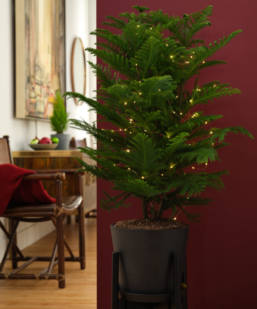 This year, instead of heading out and chopping down a tree, consider adopting a new living tree into the family. Living trees such as the Norfolk pine Christmas tree can be delivered right to your door with Bloomscape.