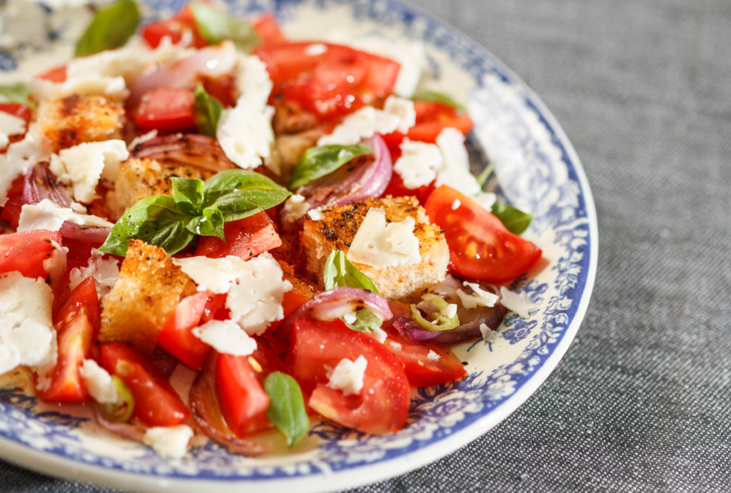 Combine the preserved lemon juice and olive oil with the tomatoes and toss. Don’t be scared to give them a little squeeze to crush them slightly. Add the bread and combine, but do not crush bread. Allow the mixture to sit for 5 minutes to soak up some of the juices. Add cucumber, herbs and nasturtium leaves and gently toss. Season with salt and pepper to taste, heap onto a platter and top with more herbs, nasturtium flowers, feta, and a drizzle of olive oil. Add seasoning if desired.