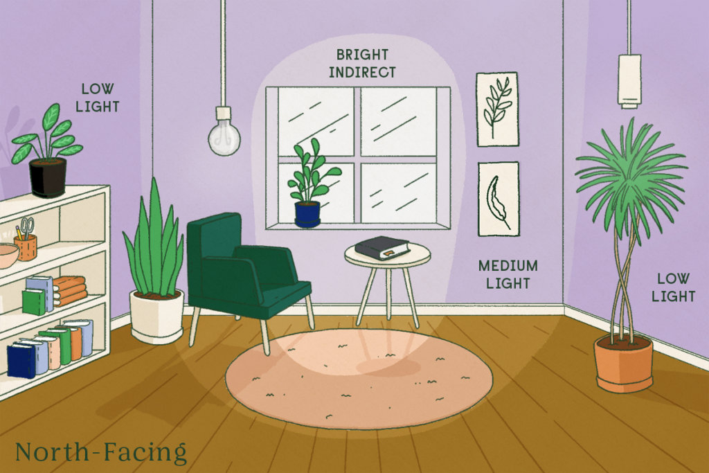 North-facing windows provide indirect light that is suitable for indirect and low light plants. No direct sunlight will come from this direction.