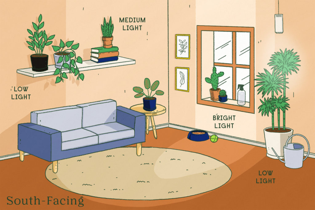 – South- or southwest-facing window: Place your plant within eight to twelve feet of the window.